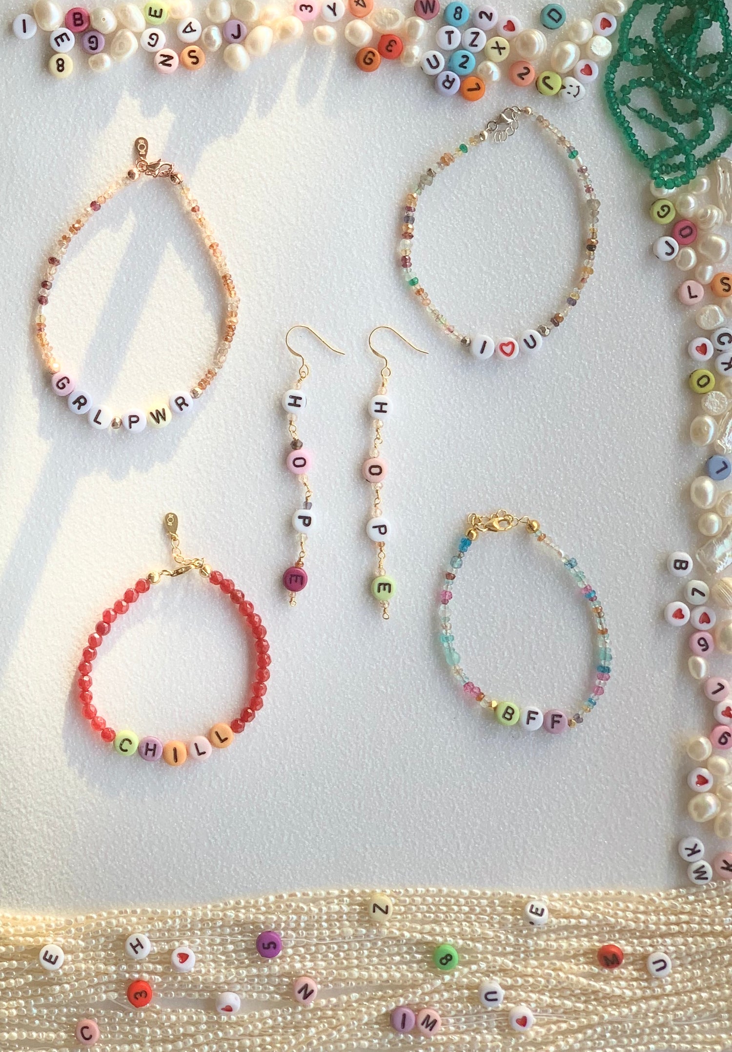 Tiny messages with big meaning, handmade in semiprecious stones, silver and silver gold plated.